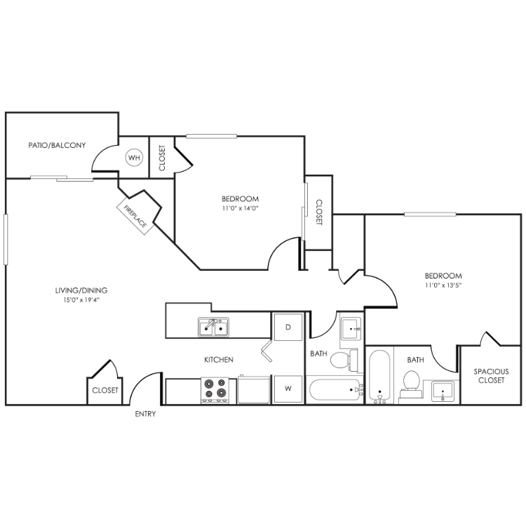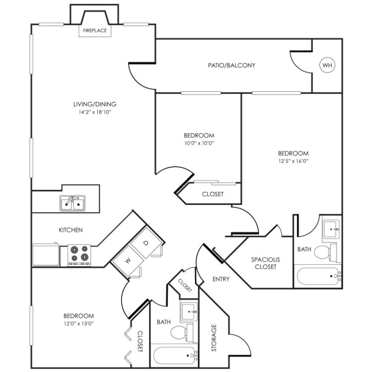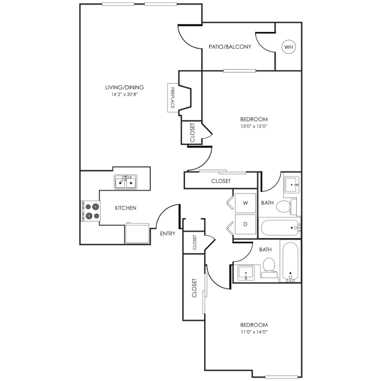 Individual apartment floor plans vary. Some features may not be available in all plans. Square footages are approximate. Contact leasing staff for details.